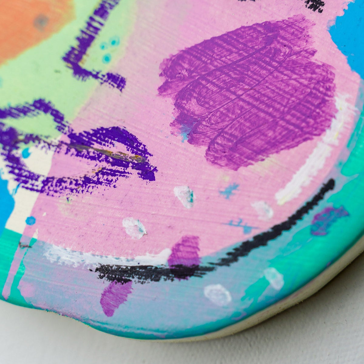 Tripping on wooden blocks, watching bubbles gather and clog the blower, chaos and colour piled high where artisan ceramics and records once lived. The Kaleidoscope Cuts series is born from the joy and frustration that comes when little people merge into our spaces. Their mountains of books, toys, bits and bobs weave into ours, micro worlds found tucked between the couch and dining table. A love for kawaii and the kitsch is evident in these works, their toy-like forms a playful nod to collectible culture and a celebration of wonder and wildness.