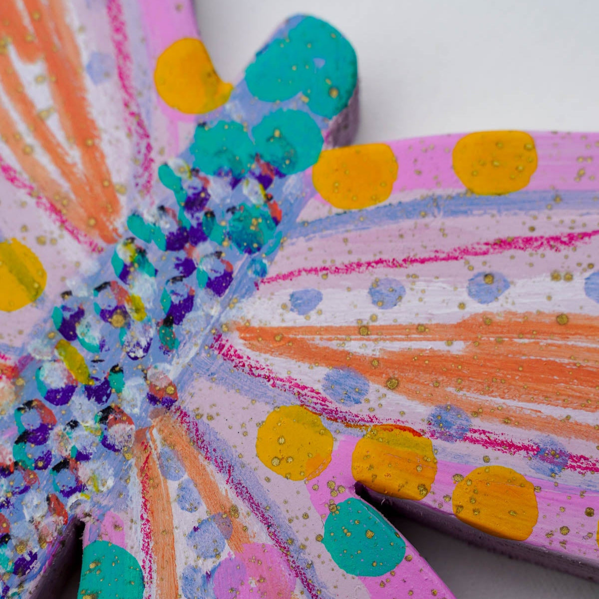 Mixed media on hand-cut marine plywood, signed on the back and ready to hang.
