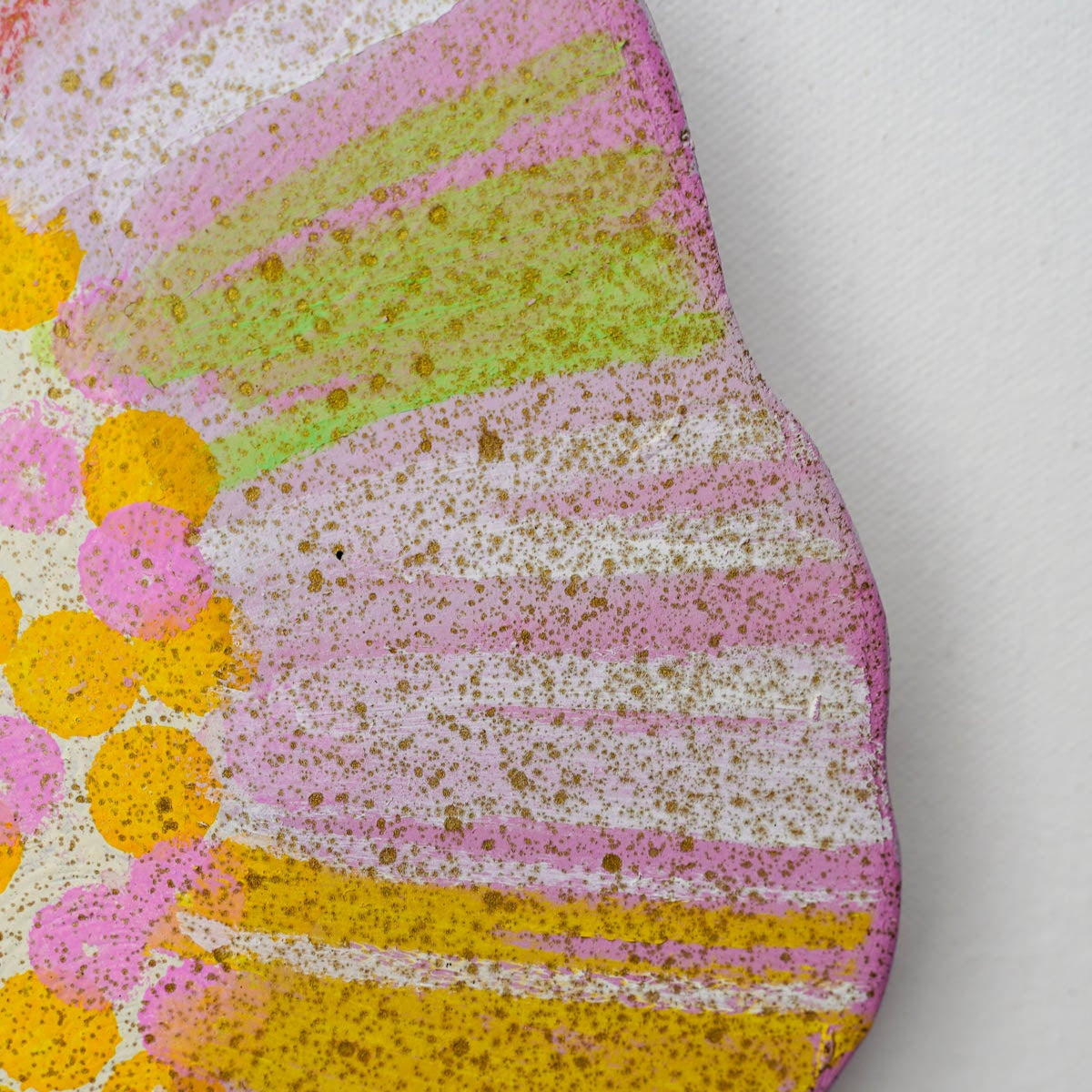 Tripping on wooden blocks, watching bubbles gather and clog the blower, chaos and colour piled high where artisan ceramics and records once lived. The Kaleidoscope Cuts series is born from the joy and frustration that comes when little people merge into our spaces. Their mountains of books, toys, bits and bobs weave into ours, micro worlds found tucked between the couch and dining table. A love for kawaii and the kitsch is evident in these works, their toy-like forms a playful nod to collectible culture and a celebration of wonder and wildness.