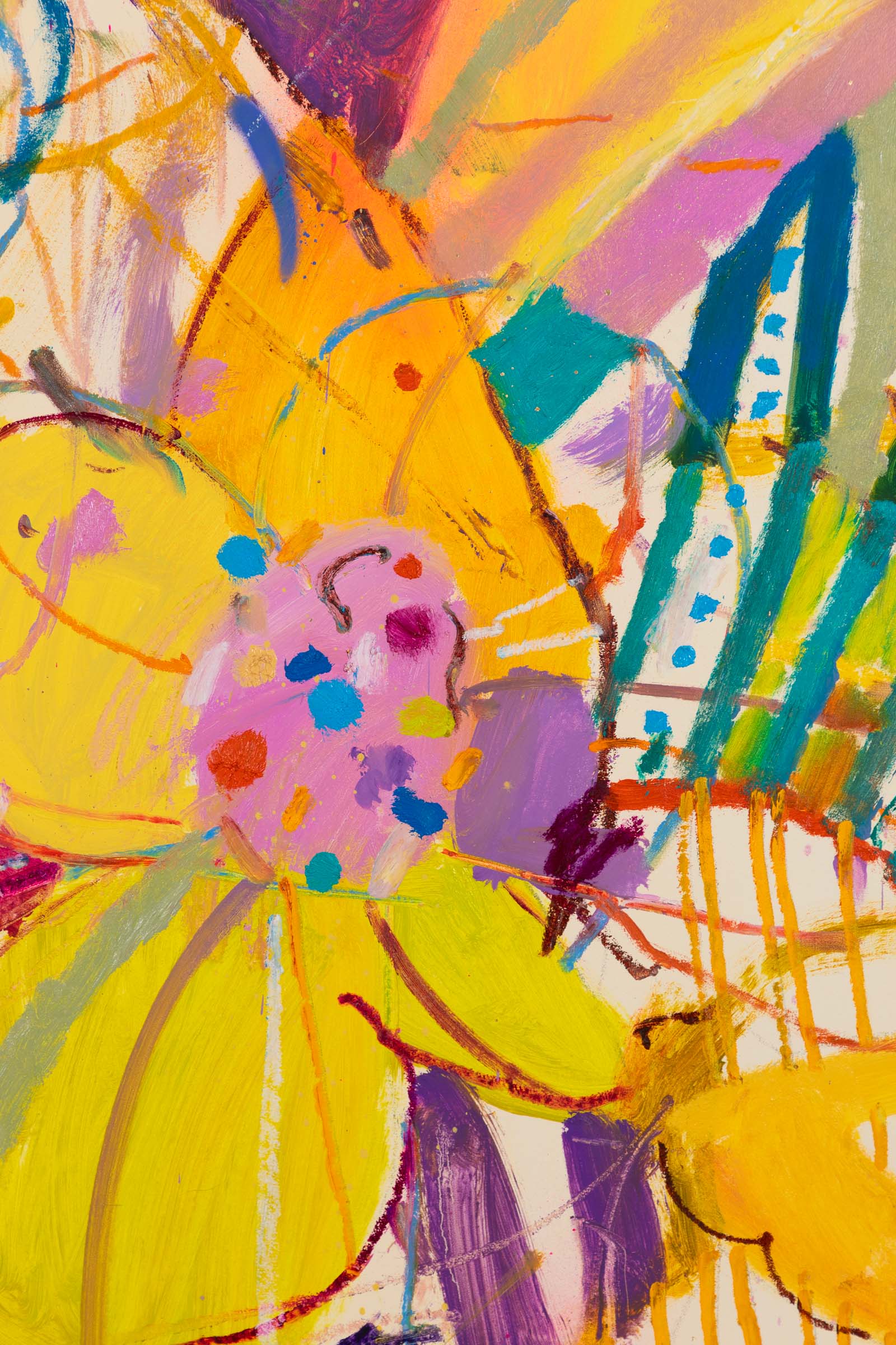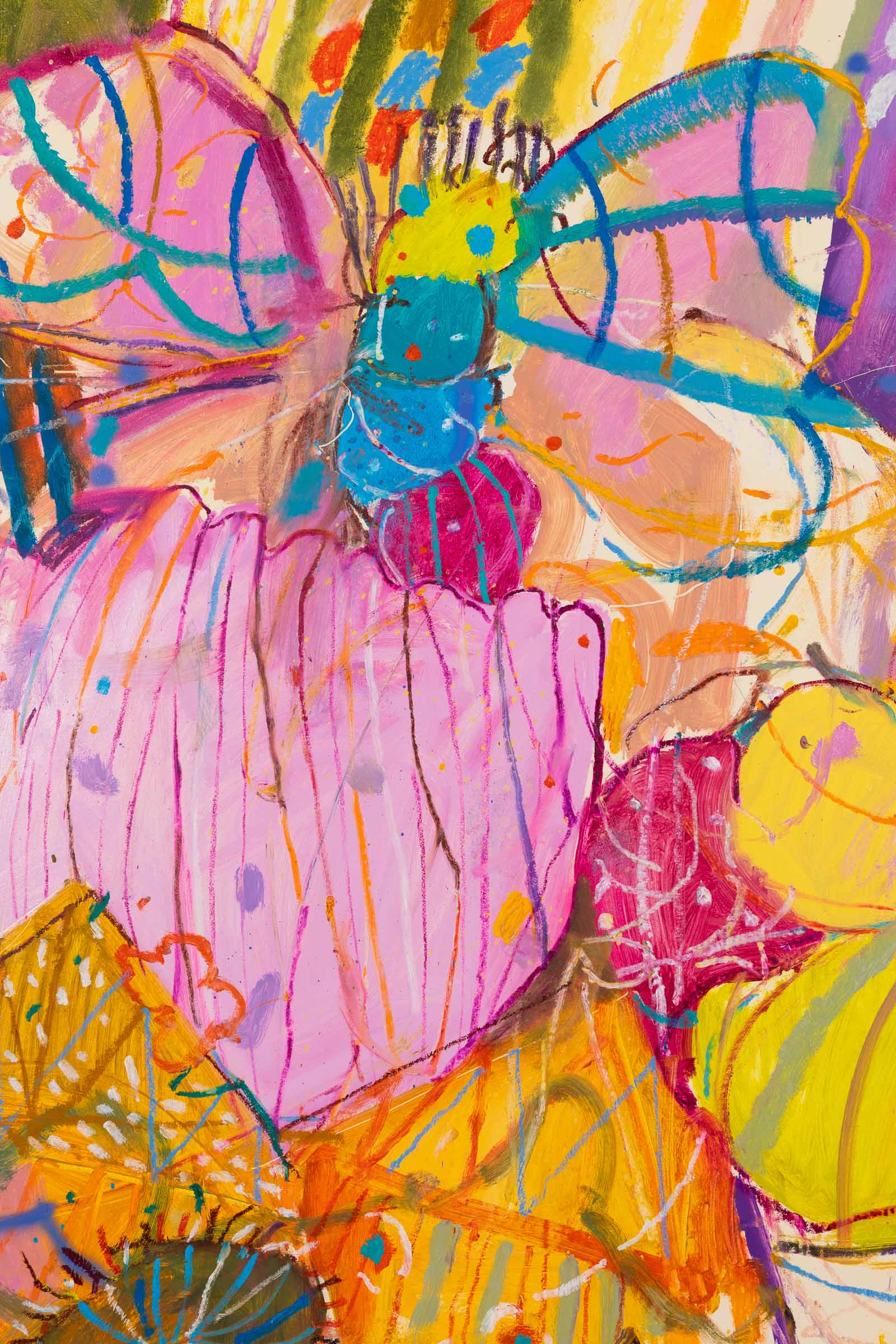 I am inspired by the emotions and changes in the world around me, and paint my world as I see it, resulting in dreamscapes, gardens and miniature universes. Lady Starlight is a celebration of and a tribute to my wife, painted three days post the birth of our second son. After witnessing the power and resilience of the human spirit, I painted this piece depicting a transcendental movement of light and shape - pure emotion, the trials the triumphs the tribulations – our world had just got a whole lot brighter.