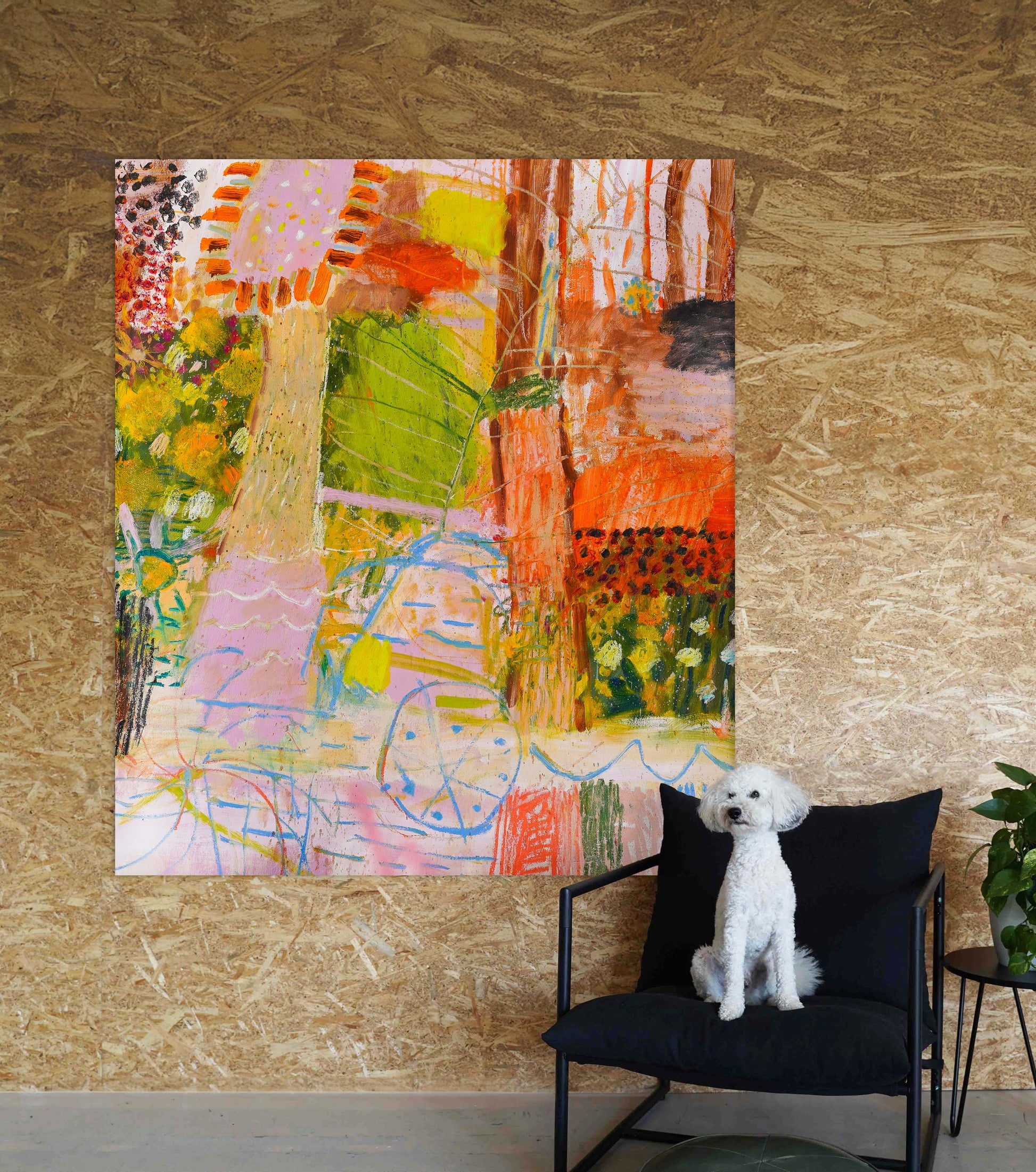 Original canvas paintings are float framed in 1cm wide by 5cm deep oak frames, finished in either oak, black or white depending on the piece.
