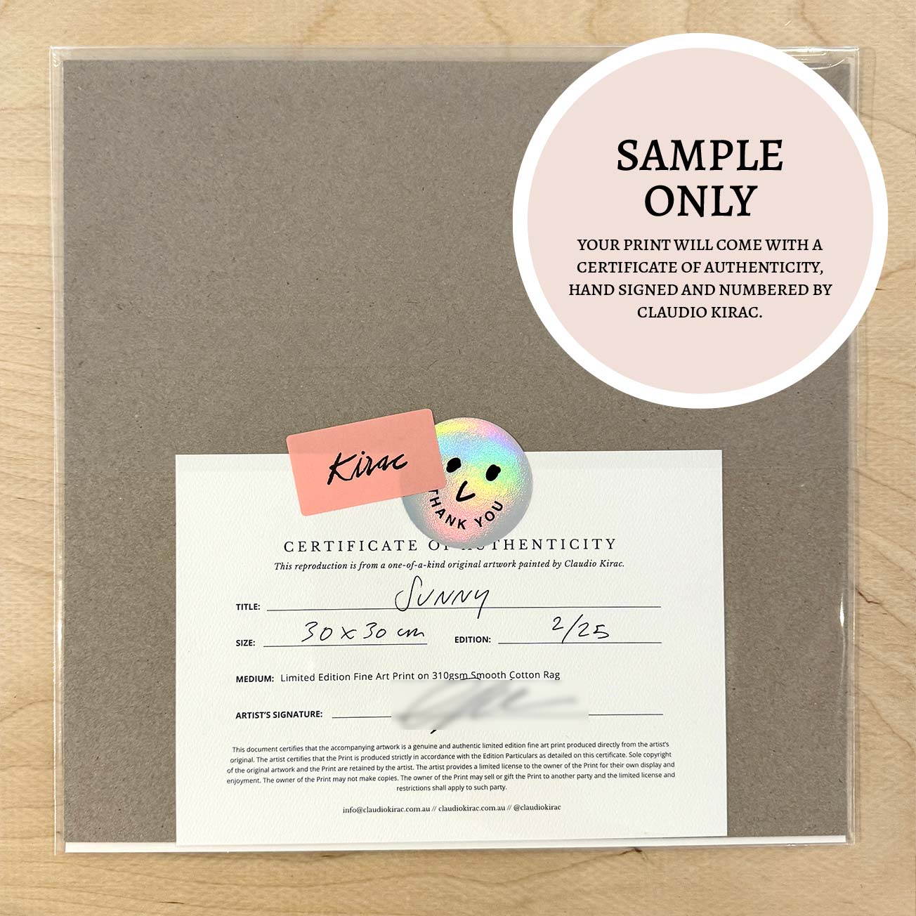 Limited Edition prints come with a certificate of Authenticity hand signed by the artist.
